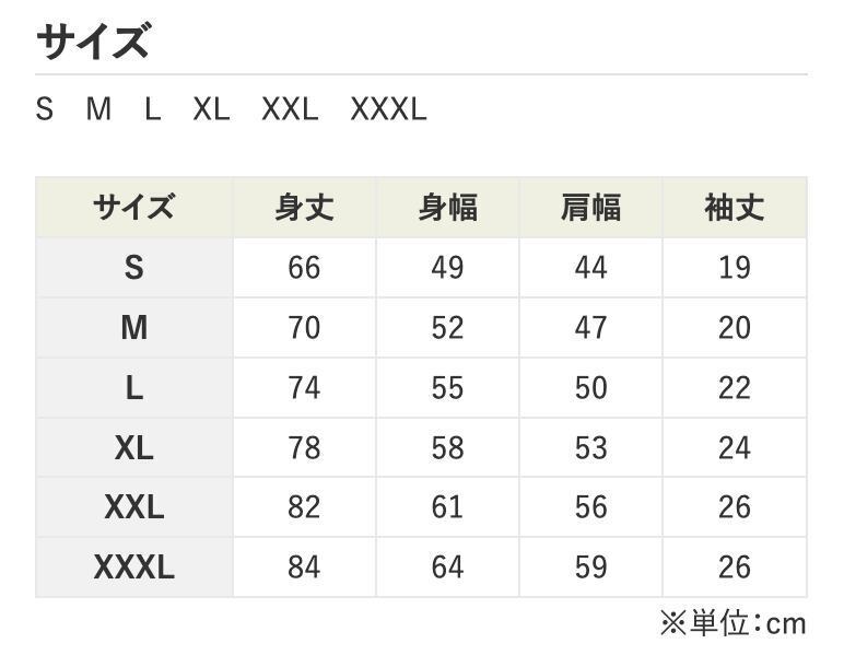 ユニセックス対応で、S〜XXXLまでの豊富なサイズ展開。